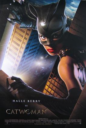 If I ever see Halle Berry crossing the street, not only will I not brake if I’m still moving, but I will hit the gas pedal and run over that heifer. Why do I feel so hostile, you ask gentle reader? That’s because I sat through a screening of Catwoman, and I have to say that this movie is the worst that she’s ever done….yes, even worse than B.A.P.S. This movie is a true cat-ass-trophy. Hoping to ride the wave of popularity enjoyed by many comic-book movies and her Oscar win, Berry for some reason decided to make this horrendous film. However, unlike most of the other projects, like X-Men, which she was also apart of, those movies had a good plot and the comics a fairly substantial following, an attribute neither the film nor the comic for Catwoman could boast. OK, let me run down the details…Patience Phillips (Berry) works at a cosmetics company and while her artistic style is superb, her clothing style beckons tickets from the fashion police. She’s well-meaning, but awkward, and still has yet to blossom. She toils for her bosses Mr. and Mrs. Hedare (Lambert Wilson: The Matrix and Sharon Stone). George Hedare has just announced that his wife Laurel is retiring and making way for a new face to launch their newest product, a miracle cream that will prevent women from aging. Patience however discovers the cream has addictive and disfiguring properties, if the women stop using it. OK, once again I’ll cut to the chase…Patience is killed for what she knows and is resurrected when cats of all breed and colors converge upon her corpse, resurrecting her with supernatural feline powers and abilities. The then goes on the prowl for revenge, and the movie goes to Hell. The hapless viewer is forced to endure Berry schlepping around the screen looking like a B-movie dominatrix channeling Socks the Cat and Ertha Kitt in a clichéd ploy to take down her former employers and save the complexions of women world wide. Did I also mention that Benjamin Bratt has a role as Patience’s lover and Catwoman’s nemesis? Shame his movie career is going to falter over this disaster. The only worthy performance here is Sharon Stone who is delightfully wicked here and hasn’t been so since Basic Instinct; even though she seems to be channeling Catherine Trammell. Sadly this movie isn’t much better than Cold Creek Manor, her last venture, but I guess she just needs the money. Lambert Wilson was clearly reenacting his role as the Merovingian and Bratt reliving his days as Detective Curtis on Law and Order. If this poorly written, poorly acted movie was a cat, I’d have it put too sleep. I feel the same way now about Halle Berry’s acting career.