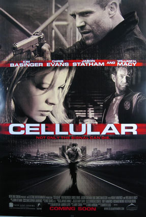 Well, I sat in the theater asking myself this question the entire time I watched Chris Evans run around the Los Angeles metropolitan area with a cell phone with screaming a Kim Basinger connected to the other end. Cellular, as the name implies, is a movie about a cell phone, well actually, a particular cell phone called by Jessica Martin (Kim Basinger), who is inexplicably kidnapped and is being held hostage in a loft somewhere in or around LA. Using skills she probably learned from watching Mr. Wizard (Jessica is a science teacher) she manages to hot wire a busted phone, and begins to dial random phone numbers (but not 911, as logic--something this film sorely lacks--would dictate). On the other side is Ryan (Chris Evans: Not Another Teen Movie), a surfer boy who can't seem to forget his ex-girlfriend or learn some responsibility. Of course Ryan initially thinks the call is a prank until he hears one of Jessica's captors, Greer (Jason Statham: Snatch) threaten to kill her entire family unless she can turn over what they are looking for. Ryan, realizing that this phone call is not a drill, goes to the nearest police station and reports the call to an officer with a case of short-timer syndrome (William H. Macy). Ryan never gets any action taken because of a series of incidents at the police station that prevent him from seeing the right people.