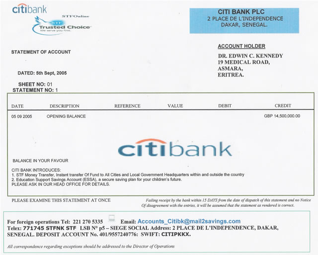 Bank in Dakar, Senegal, i have the bank statement of account in my